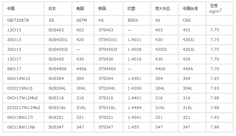 不銹鋼板標(biāo)準(zhǔn)鋼號(hào)密度表